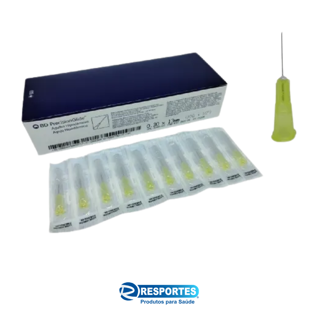 A agulha hipodérmica BD 30G é indicada para procedimentos que exigem máxima precisão e mínimo desconforto ao paciente. Com dimensões de 13×0,30 mm e calibre ultrafino (30G), proporciona aplicações mais suaves, sendo ideal para uso subcutâneo e intradérmico.